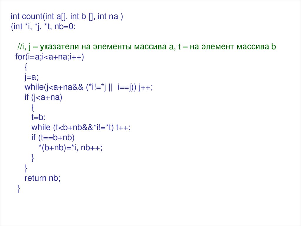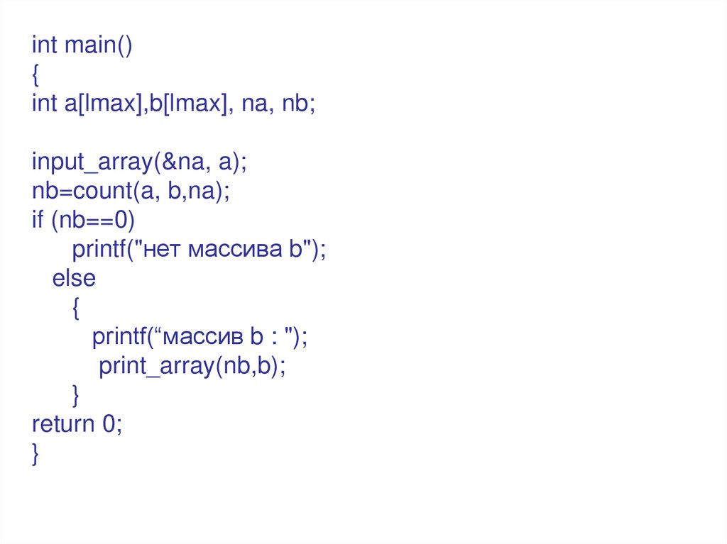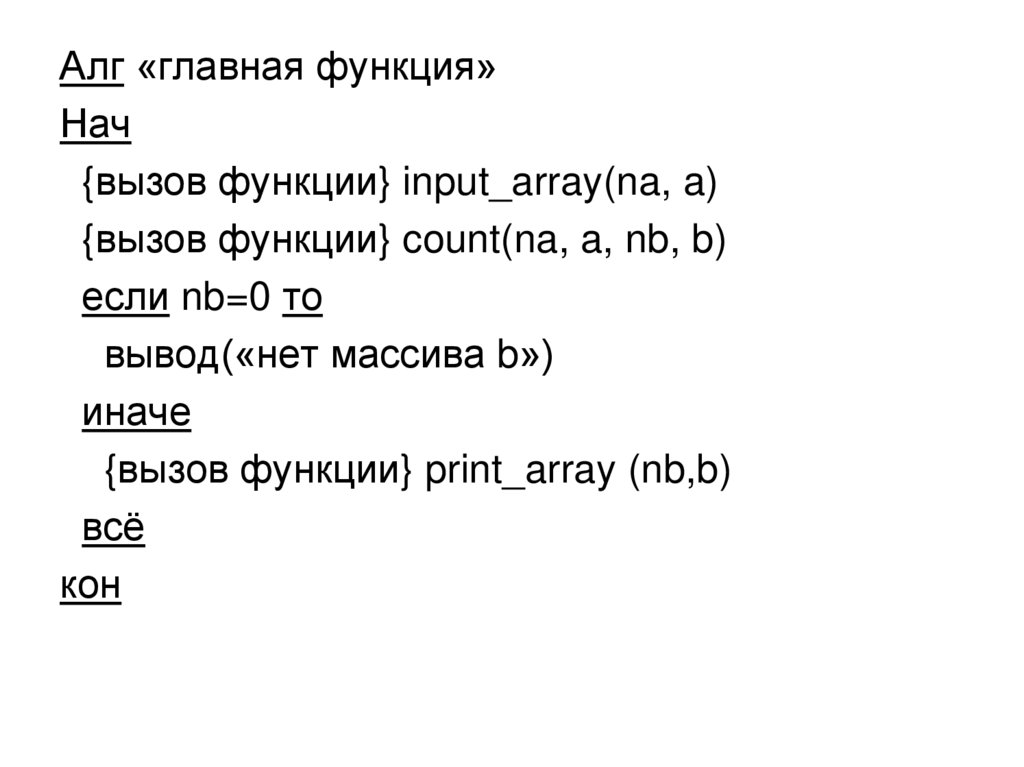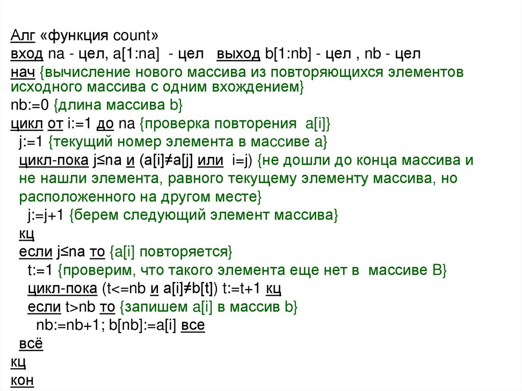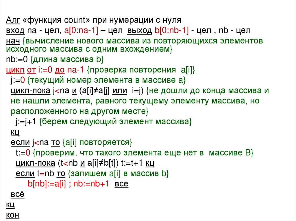 Алг «функция count» при нумерации с нулявход na - цел, a[0:na-1] – цел выход b[0:nb-1] - цел , nb - цел