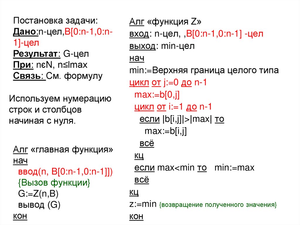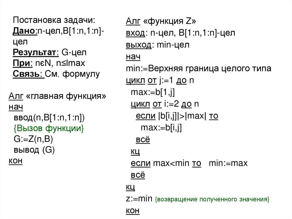 Постановка задачи:Дано:n-цел,B[1:n,1:n]цел