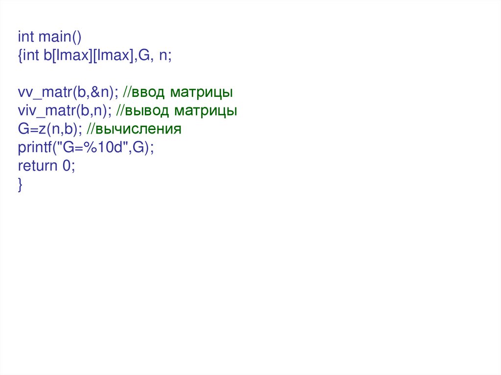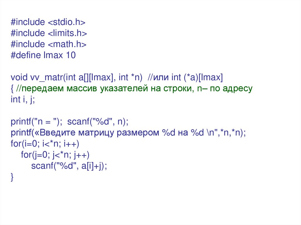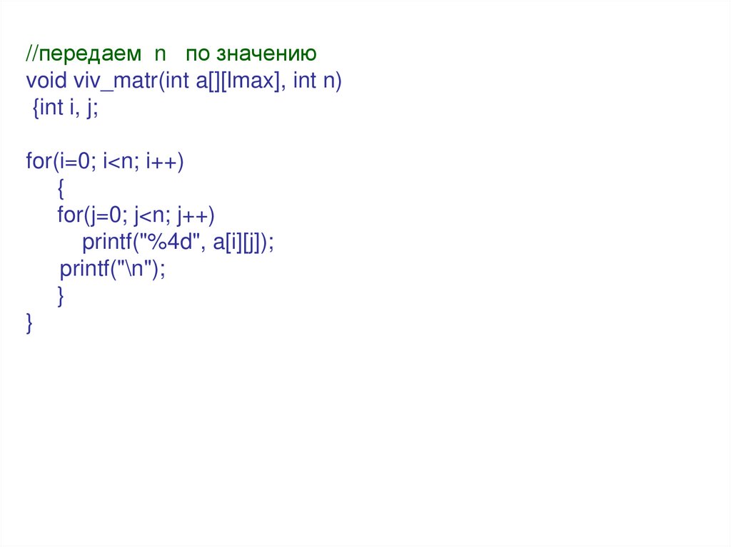 //передаем n по значениюvoid viv_matr(int a[][lmax], int n)