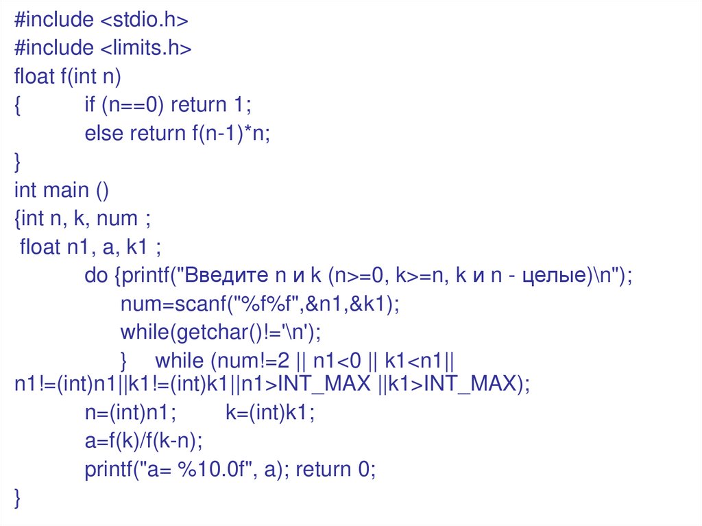 do {printf("Введите n и k (n>=0, k>=n, k и n - целые)\n");