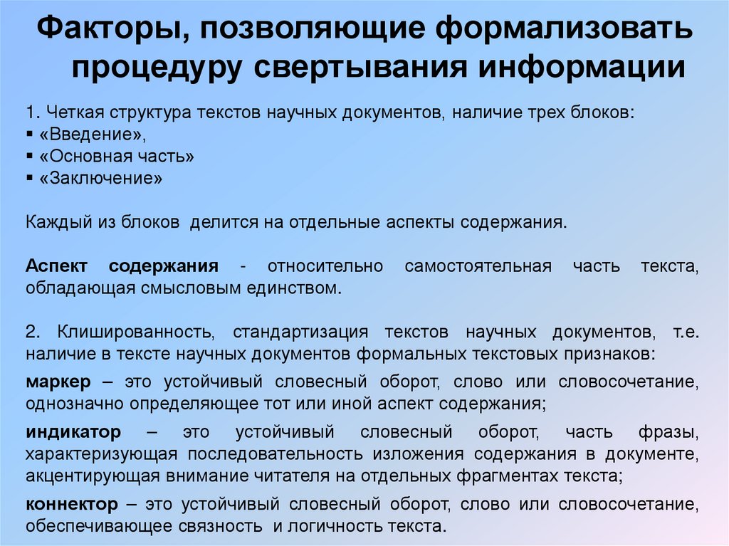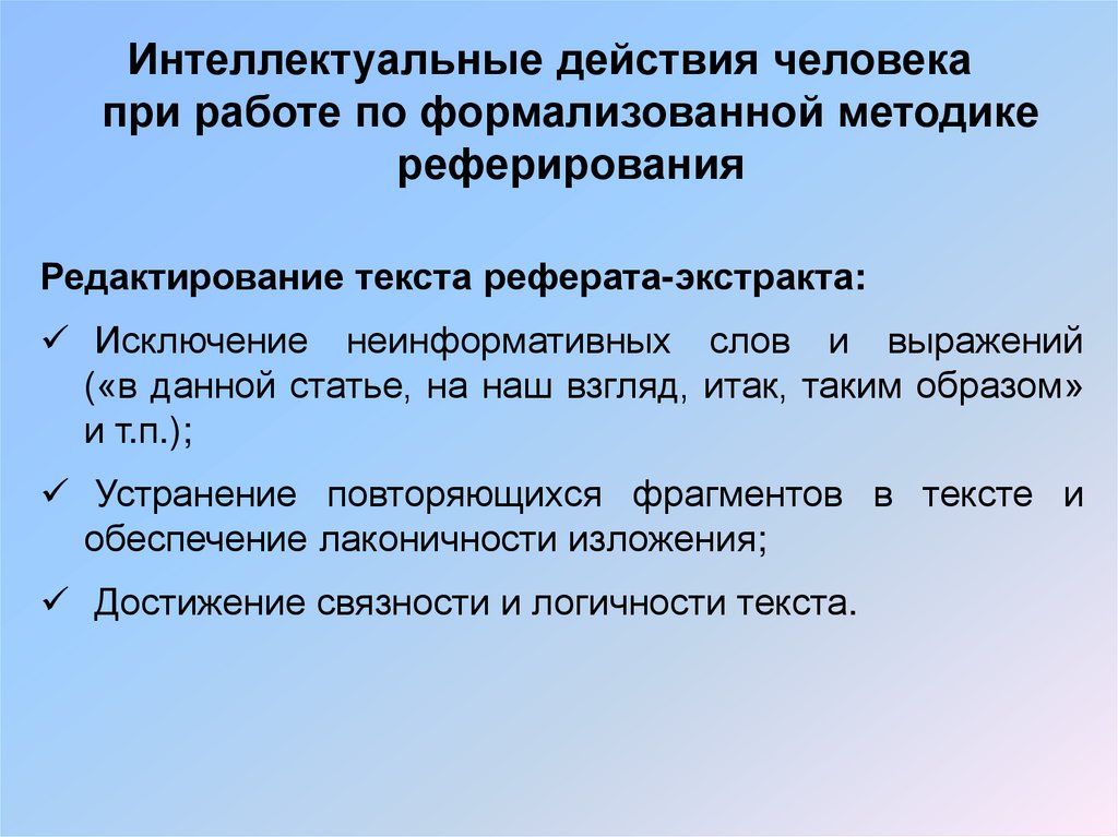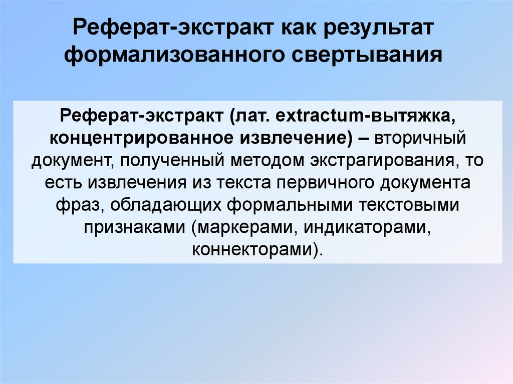 Экстрагирование (цитирование) – извлечение изтекста ПД предложений, которые полностью или с