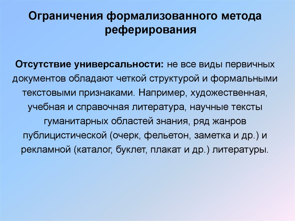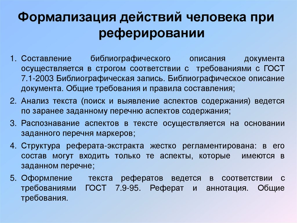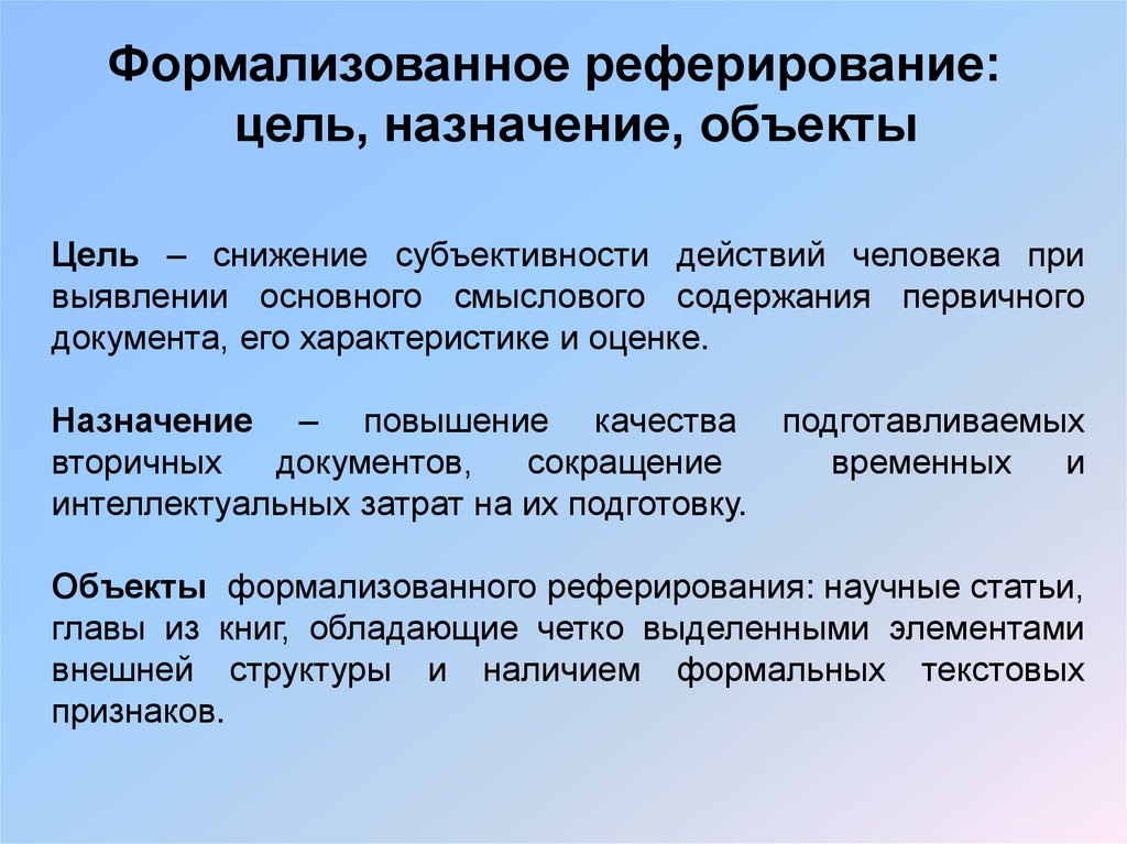 Реферирование – процесс АСПИ, заключающийся ванализе ПД и извлечении из него наиболее важных в
