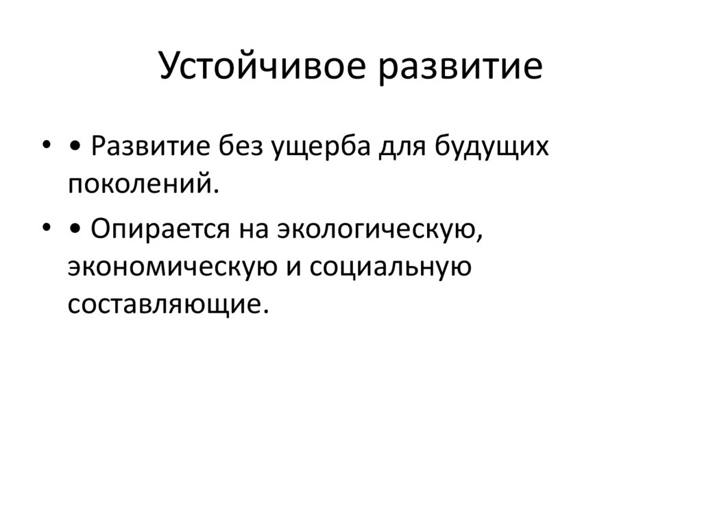 Устойчивое развитие• • Развитие без ущерба для будущих