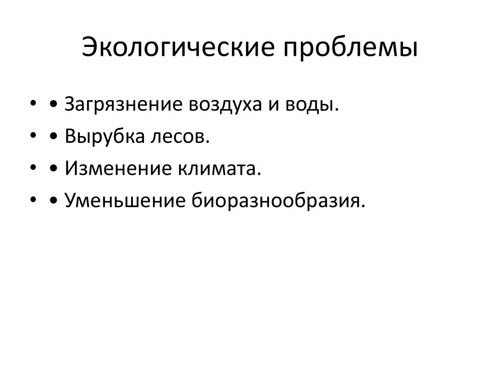 Экологические проблемы• • Загрязнение воздуха и воды.
