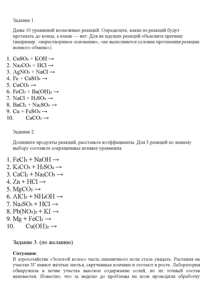 Задание 1.Даны 10 уравнений возможных реакций. Определите, какие из реакций будут