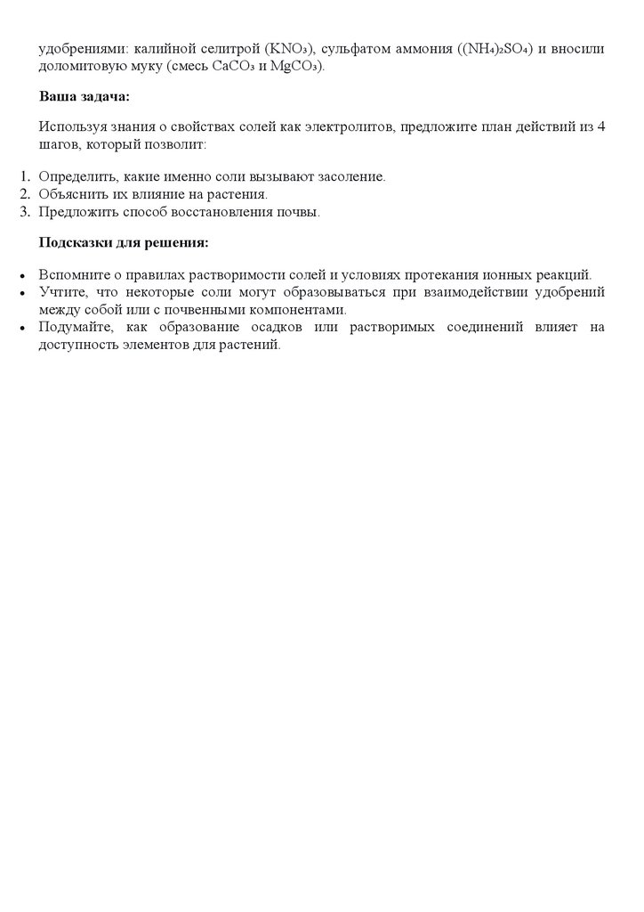 1. Определить, какие именно соли вызывают засоление.