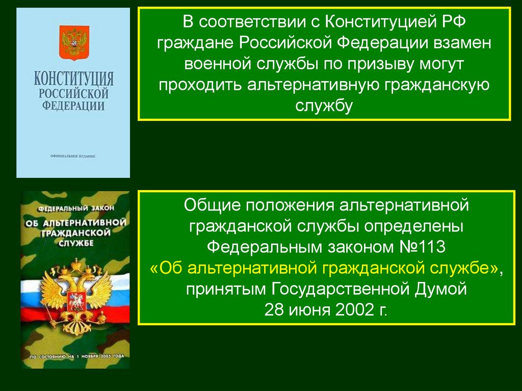 Гражданин имеет право на замену военнойслужбы по призыву альтернативной