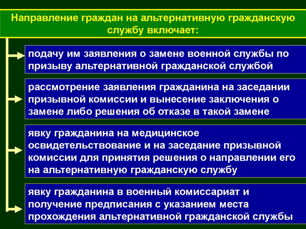 Направление граждан на альтернативную гражданскуюслужбу включает: