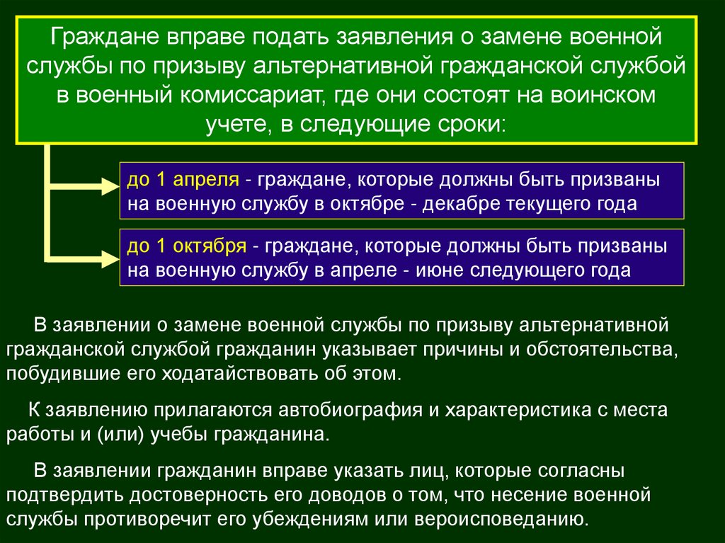 Граждане вправе подать заявления о замене военнойслужбы по призыву альтернативной гражданской службой