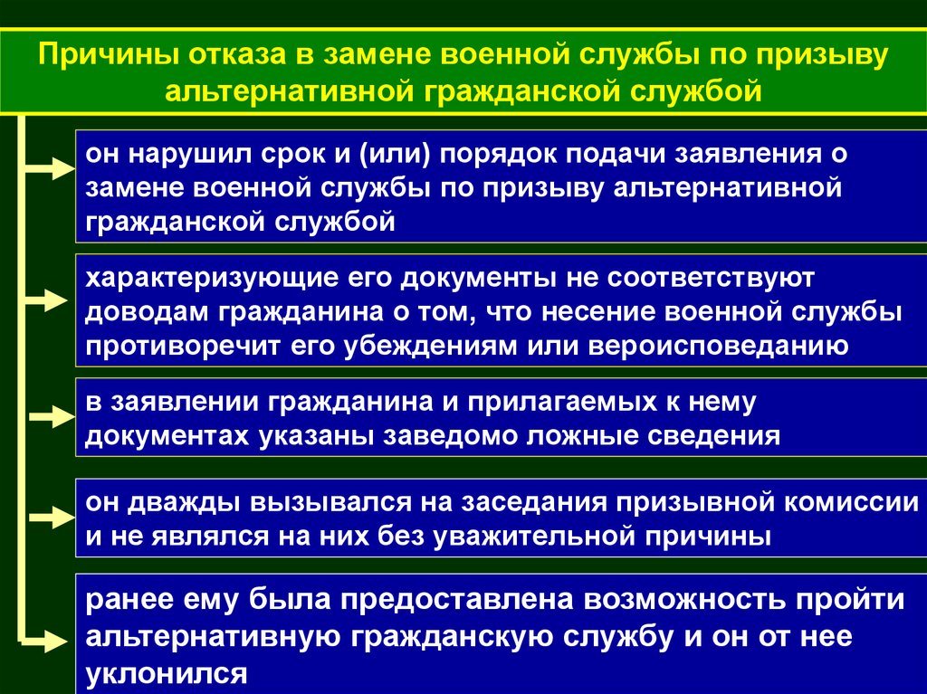 Причины отказа в замене военной службы по призывуальтернативной гражданской службой