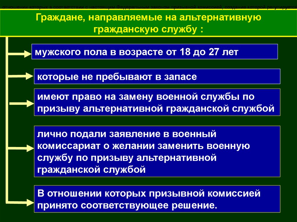 отношении которых в соответствии с настоящим Федеральным законом призывной комиссией, создание которой регулируетсяГраждане, направляемые на альтернативную