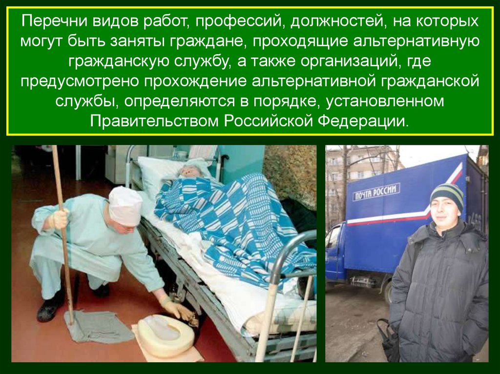Перечни видов работ, профессий, должностей, на которыхмогут быть заняты граждане, проходящие альтернативную