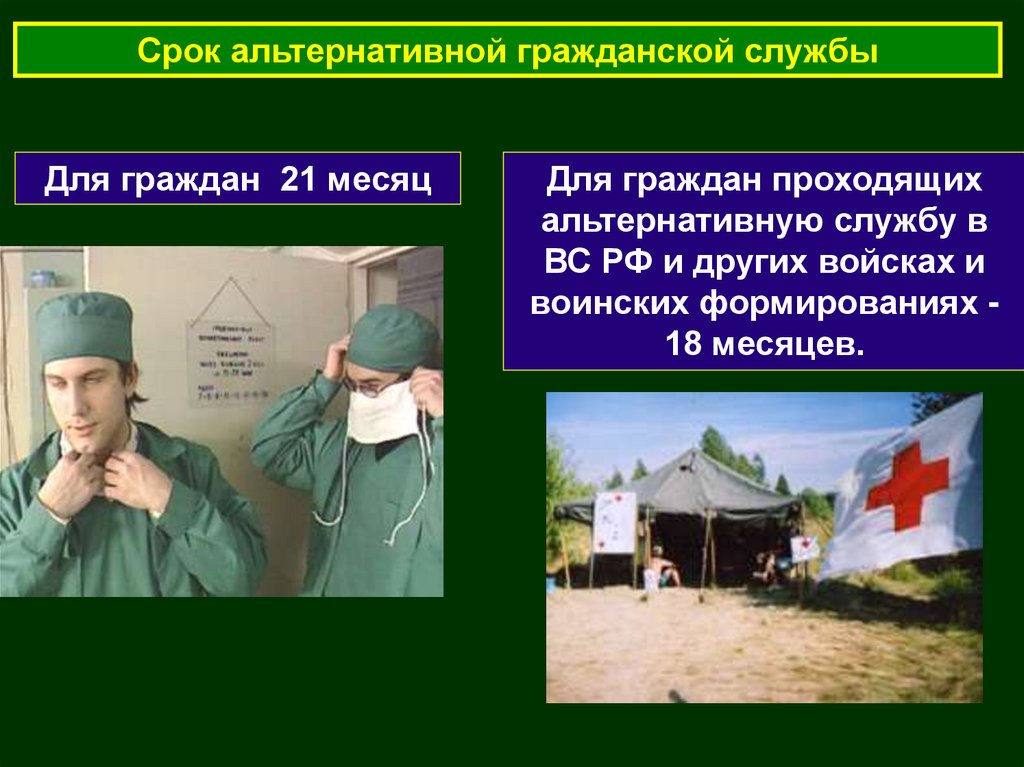 Срок альтернативной гражданской службыДля граждан 21 месяц