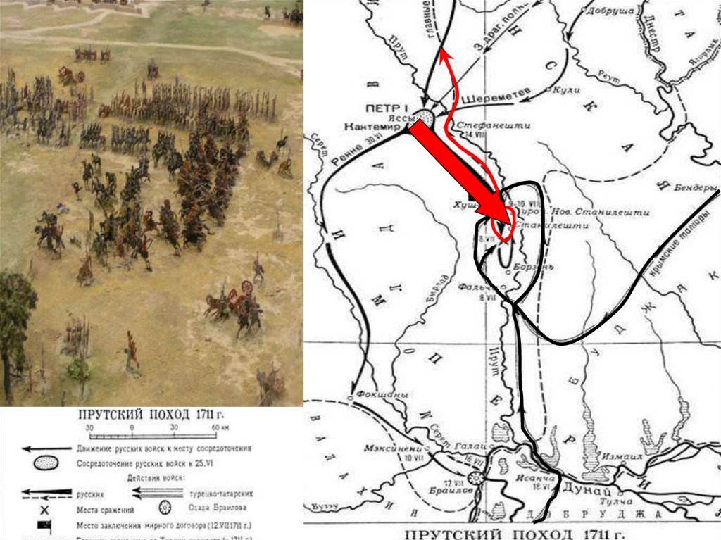 Неудачный поход Петра I против Османской империи. Россия попала в окружение, но смогла