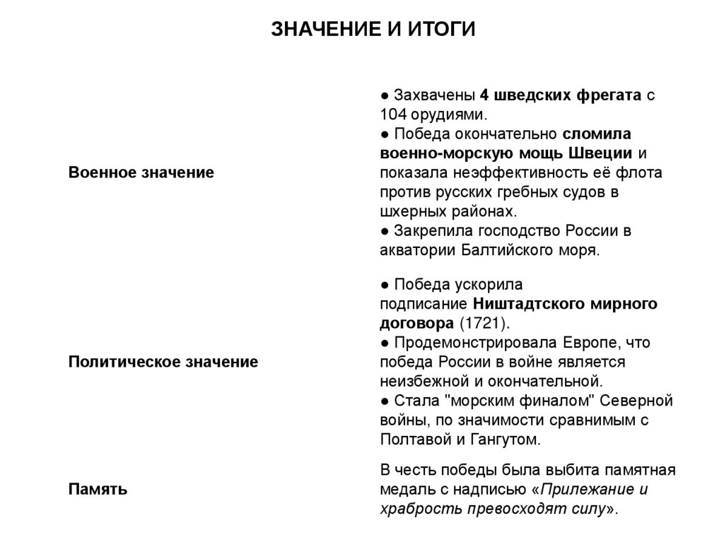 Ещё одна победа русского галерного флота. Окончательно сломила морское могущество Швеции.