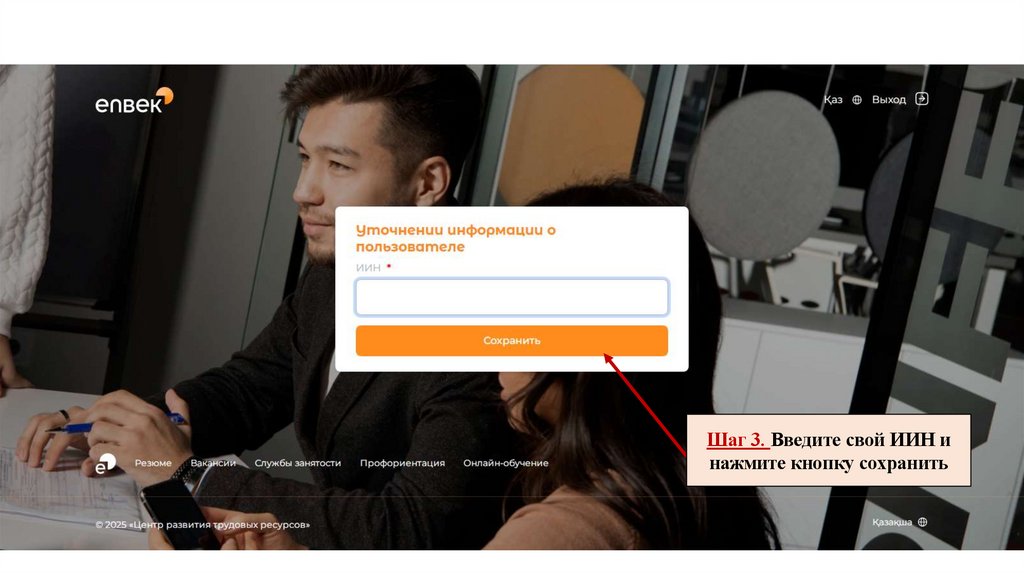 Шаг 3. Введите свой ИИН инажмите кнопку сохранить