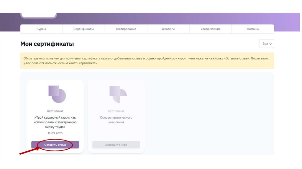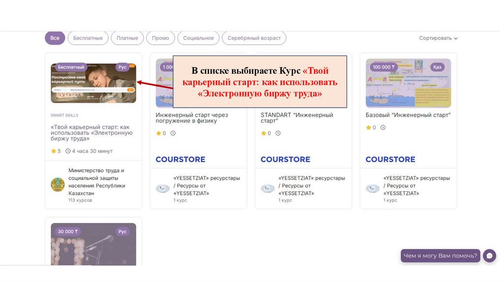 В списке выбираете Курс «Твойкарьерный старт: как использовать