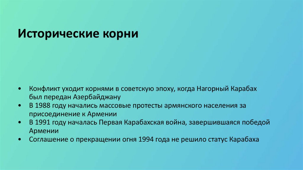 Исторические корниКонфликт уходит корнями в советскую эпоху, когда Нагорный Карабах
