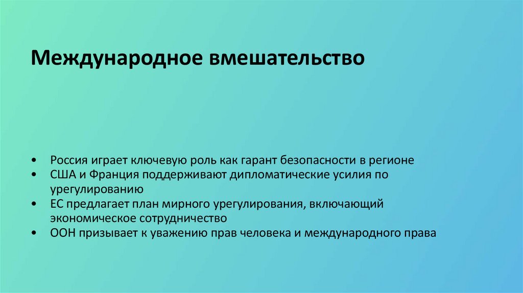 Международное вмешательствоРоссия играет ключевую роль как гарант безопасности в регионе