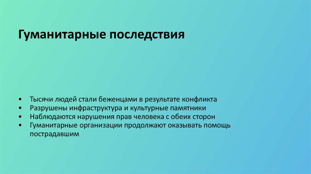 Гуманитарные последствияТысячи людей стали беженцами в результате конфликта