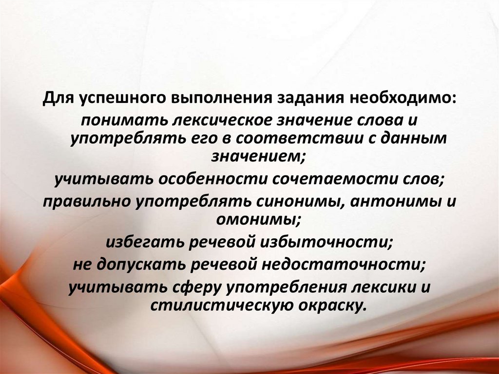 Для успешного выполнения задания необходимо:понимать лексическое значение слова и