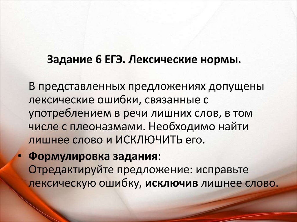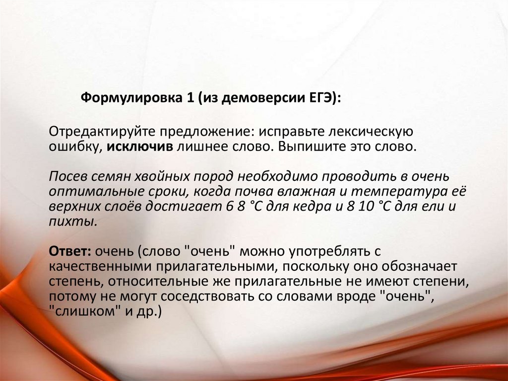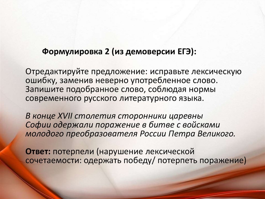 Формулировка 2 (из демоверсии ЕГЭ):Отредактируйте предложение: исправьте лексическую