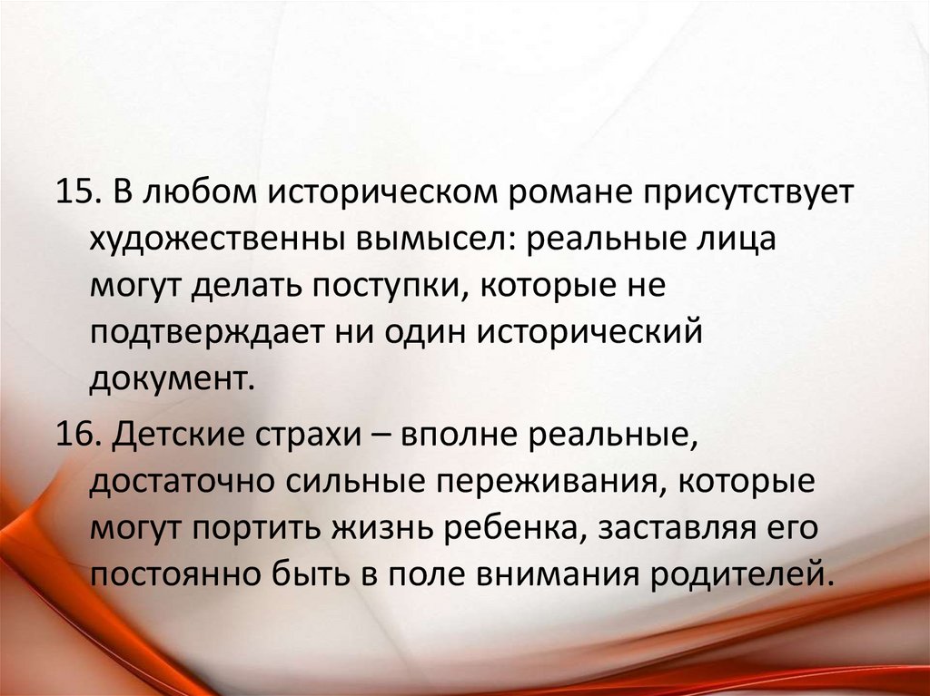 15. В любом историческом романе присутствуетхудожественны вымысел: реальные лица