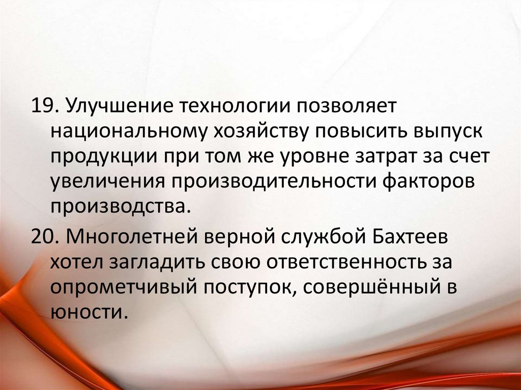 19. Улучшение технологии позволяетнациональному хозяйству повысить выпуск