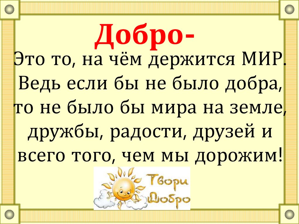 Добро-Это то, на чём держится МИР.