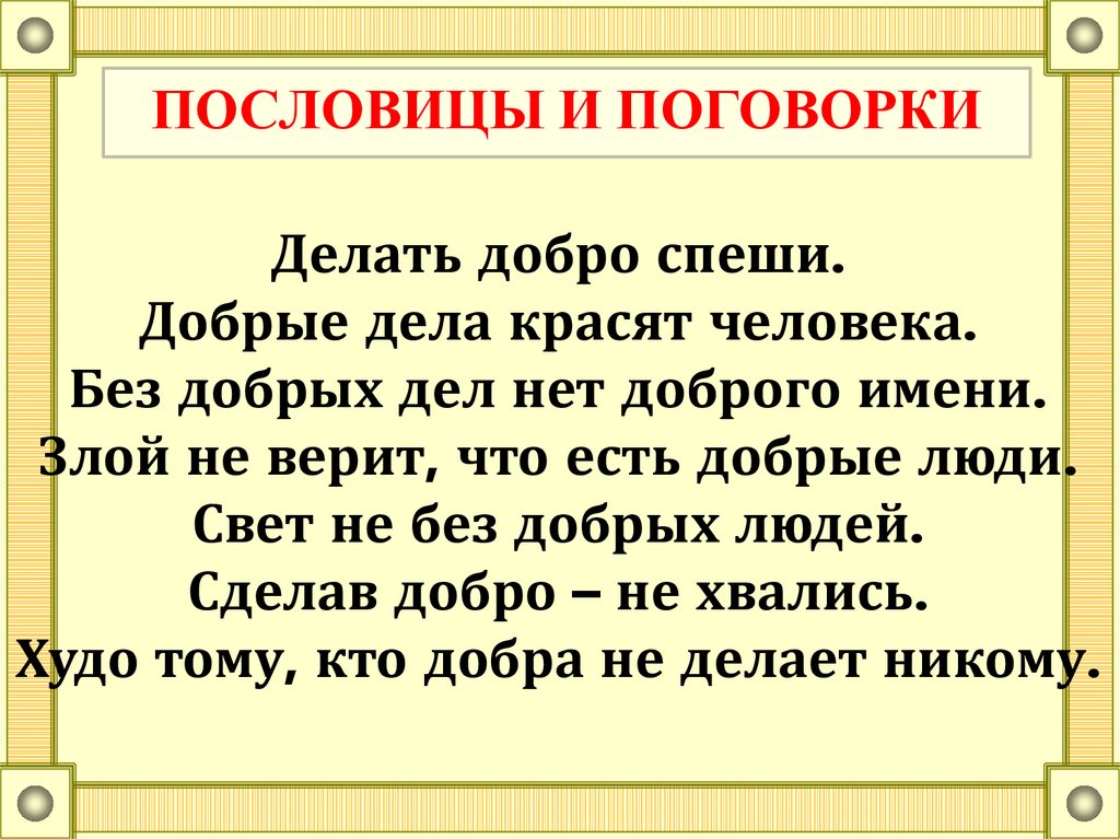 ПОСЛОВИЦЫ И ПОГОВОРКИДелать добро спеши.