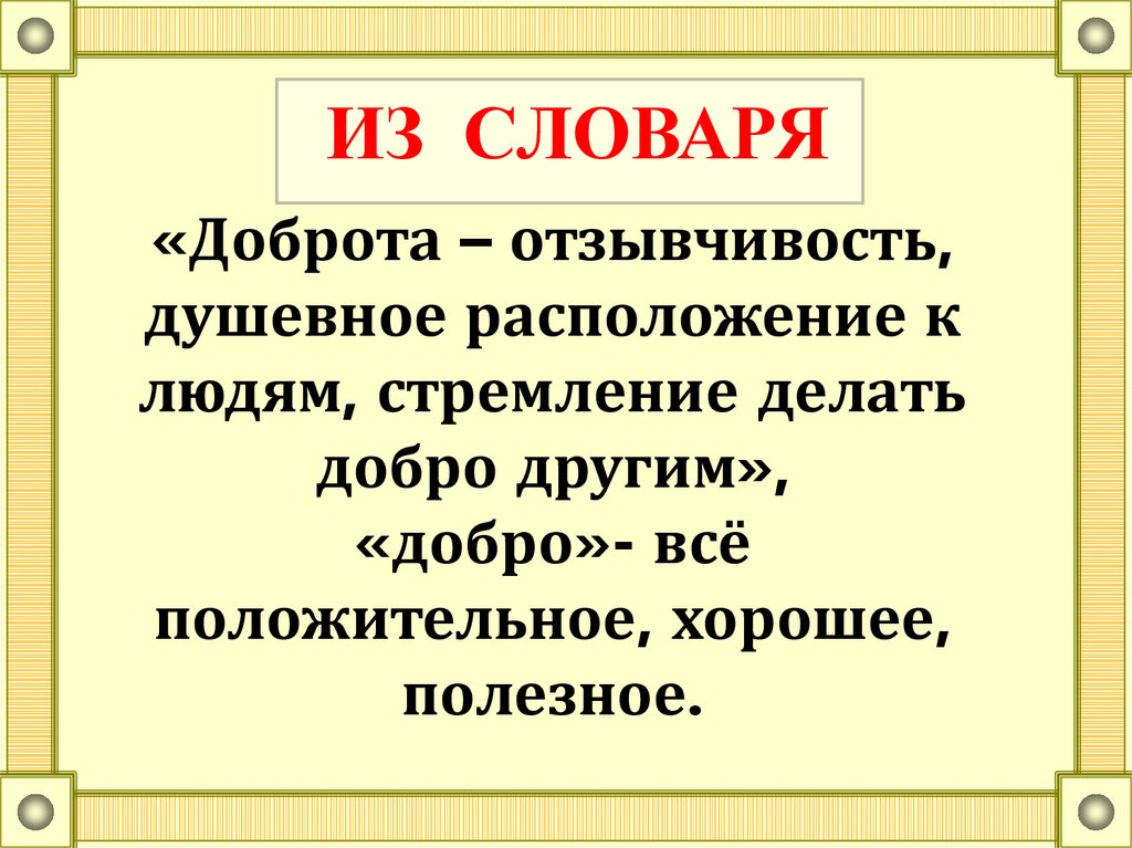 ИЗ СЛОВАРЯ«Доброта – отзывчивость,