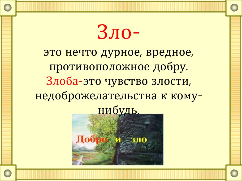 Злоэто нечто дурное, вредное,противоположное добру.