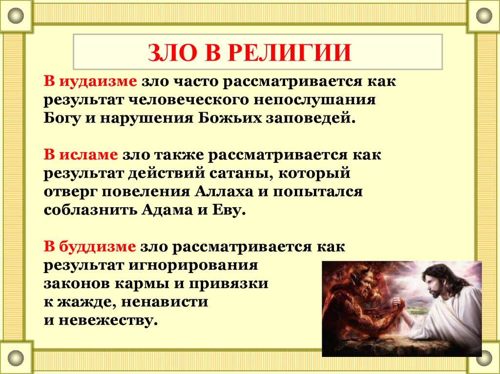 ЗЛО В РЕЛИГИИВ иудаизме зло часто рассматривается как