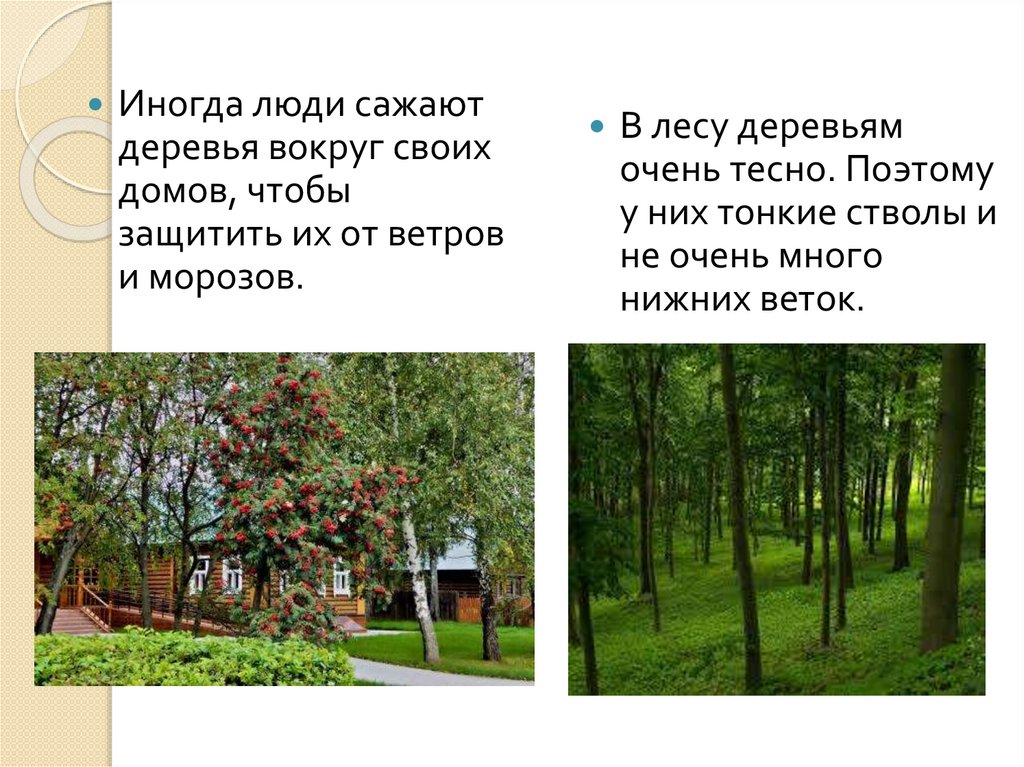 Посмотрите, как много деревьев на этойкартинке! За городом они встречаются на