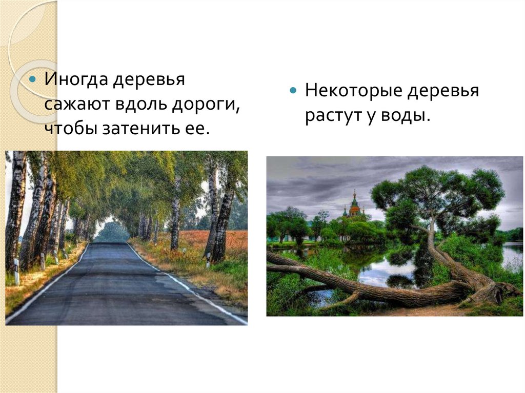 Иногда деревьясажают вдоль дороги,