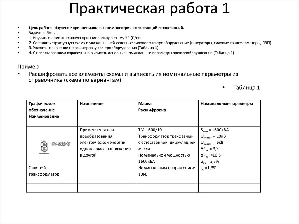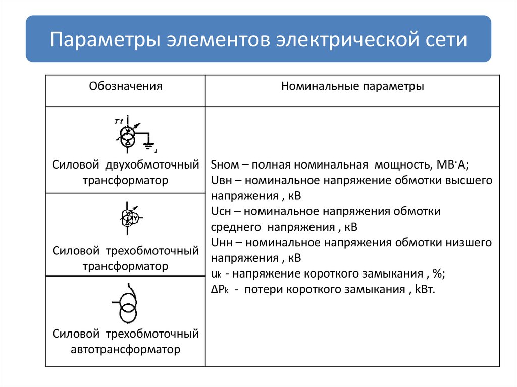 4. С использованием справочника выписать основные номинальные параметры электрооборудования (Таблица 1)