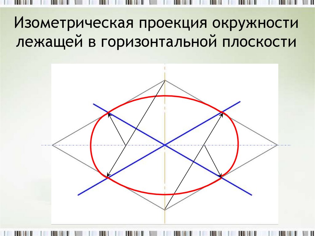 Изометрическая проекция окружностилежащей в горизонтальной плоскости