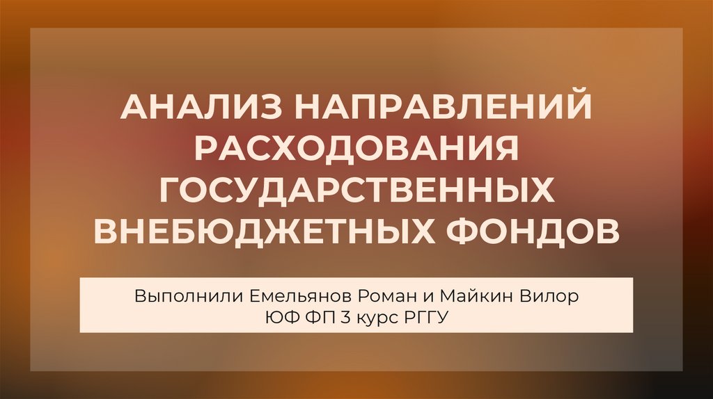 1. АНАЛИЗ НАПРАВЛЕНИЙ РАСХОДОВАНИЯ ГОСУДАРСТВЕННЫХ ВНЕБЮДЖЕТНЫХ ФОНДОВ