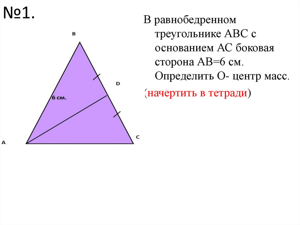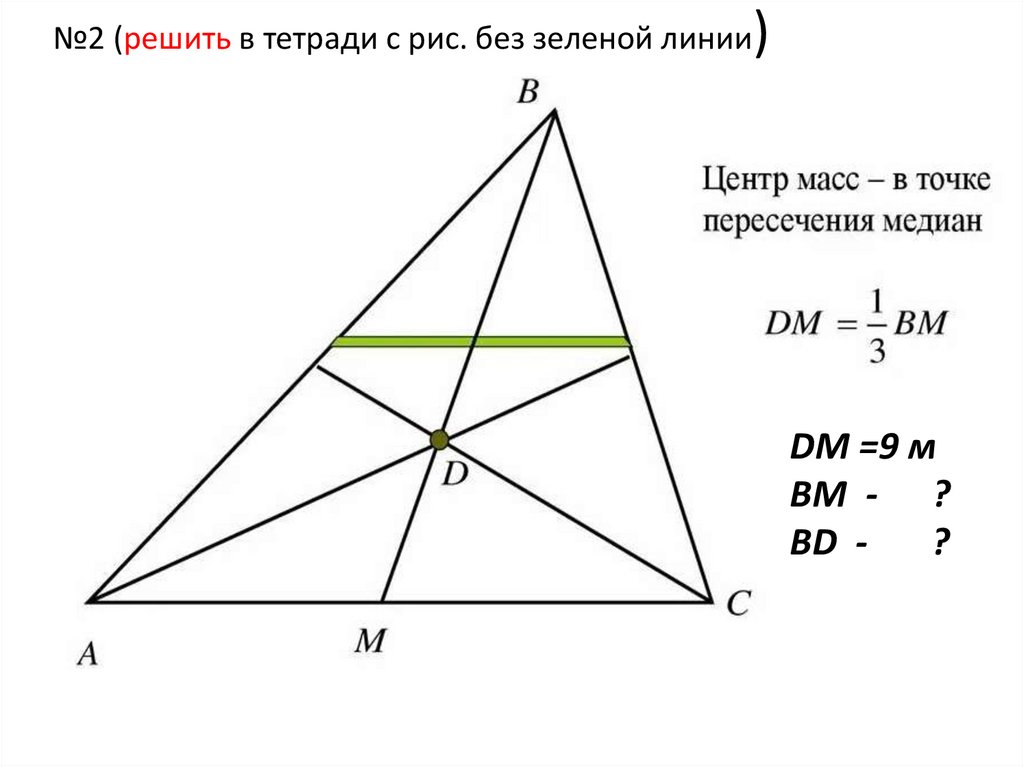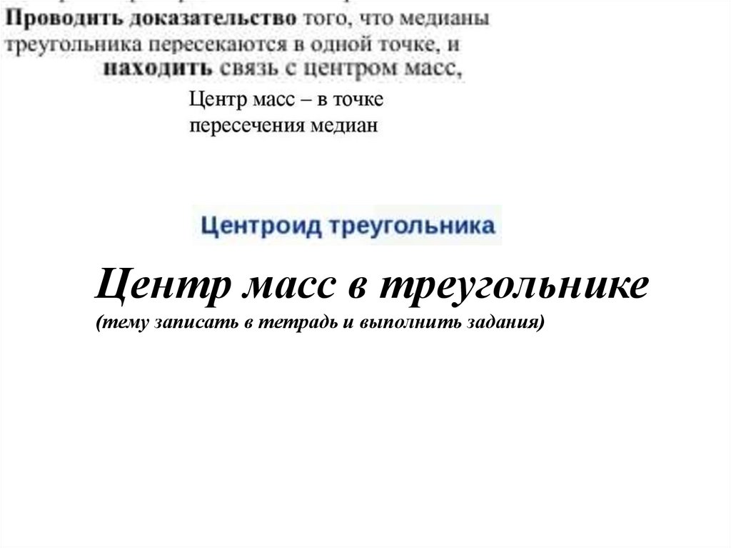 Центр масс в треугольнике(тему записать в тетрадь и выполнить задания)