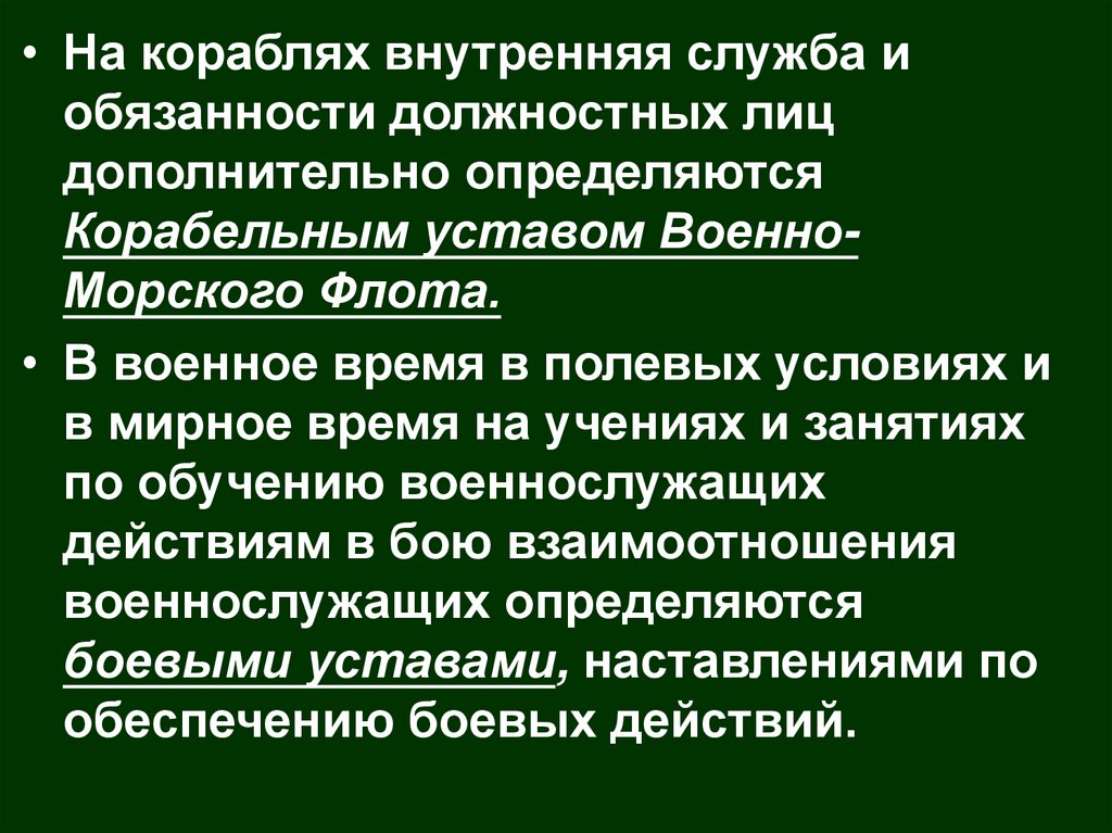 • На кораблях внутренняя служба иобязанности должностных лиц