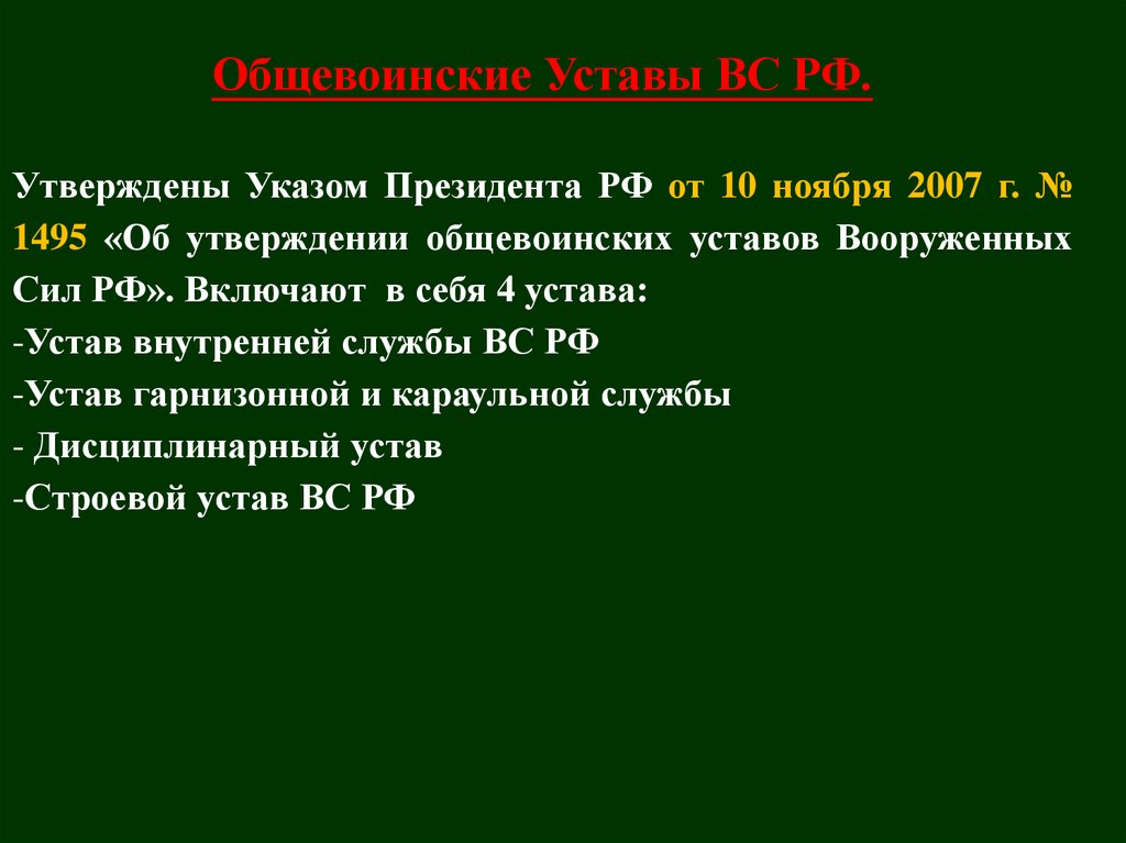 1495 «Об утверждении общевоинских уставов Вооруженных