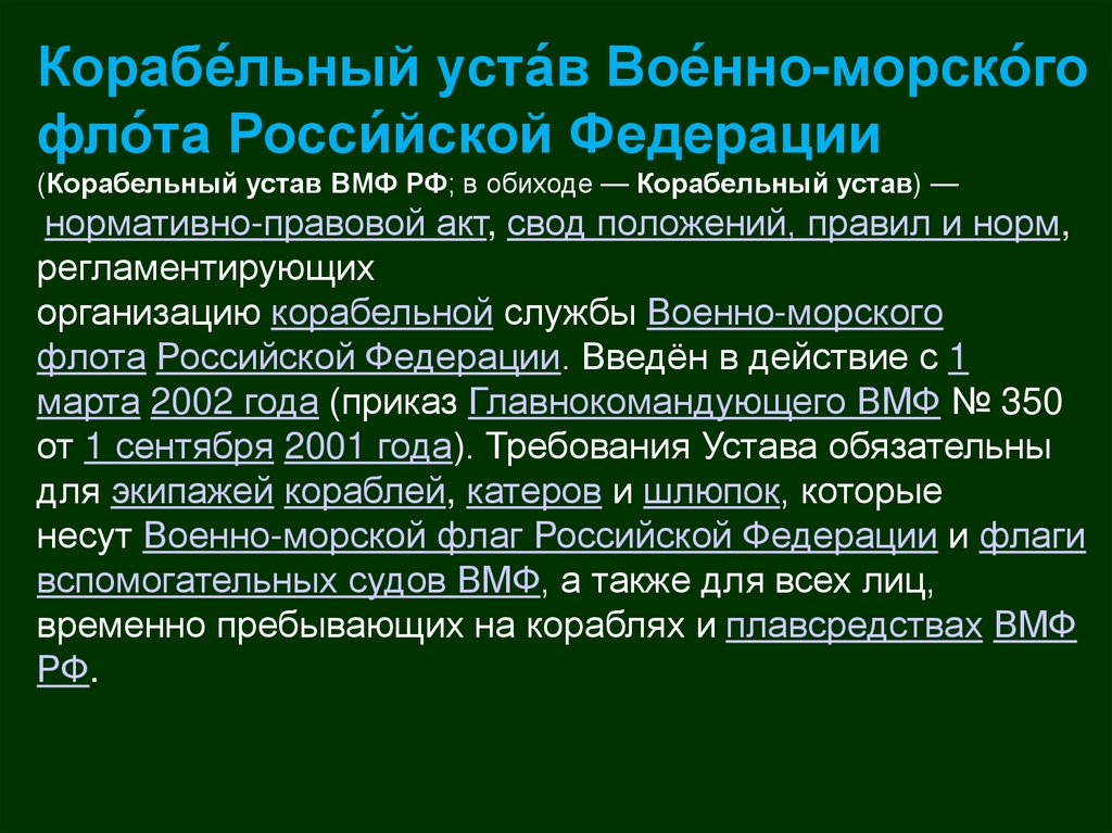Корабельный устав Военно-морского флота Российской Федерации. Он