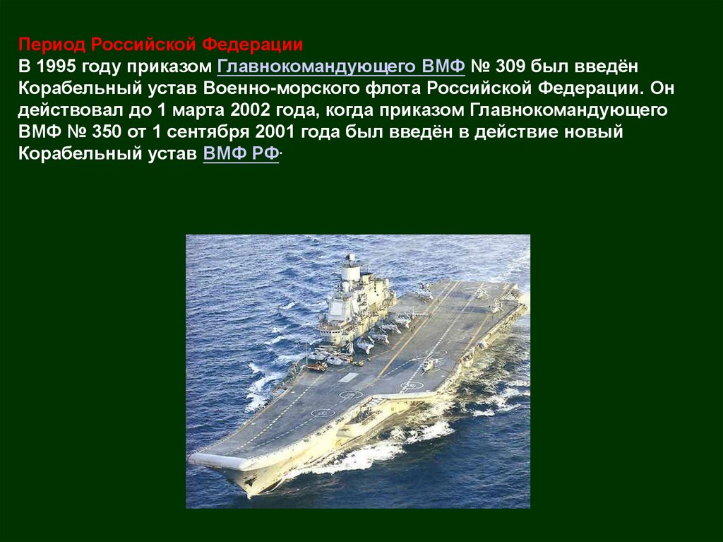 ВМФ № 350 от 1 сентября 2001 года был введён в действие новый