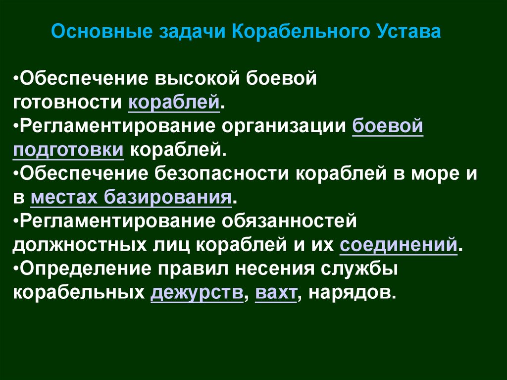 Основные задачи Корабельного Устава•Обеспечение высокой боевой