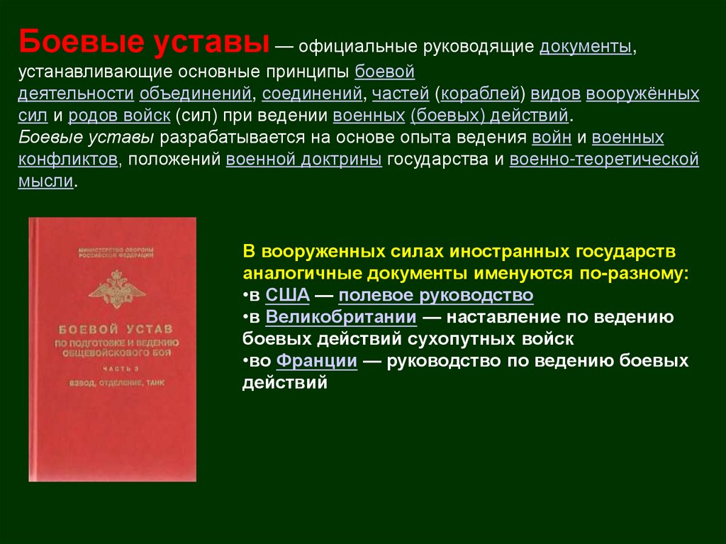 Боевые уставы — официальные руководящие документы,устанавливающие основные принципы боевой