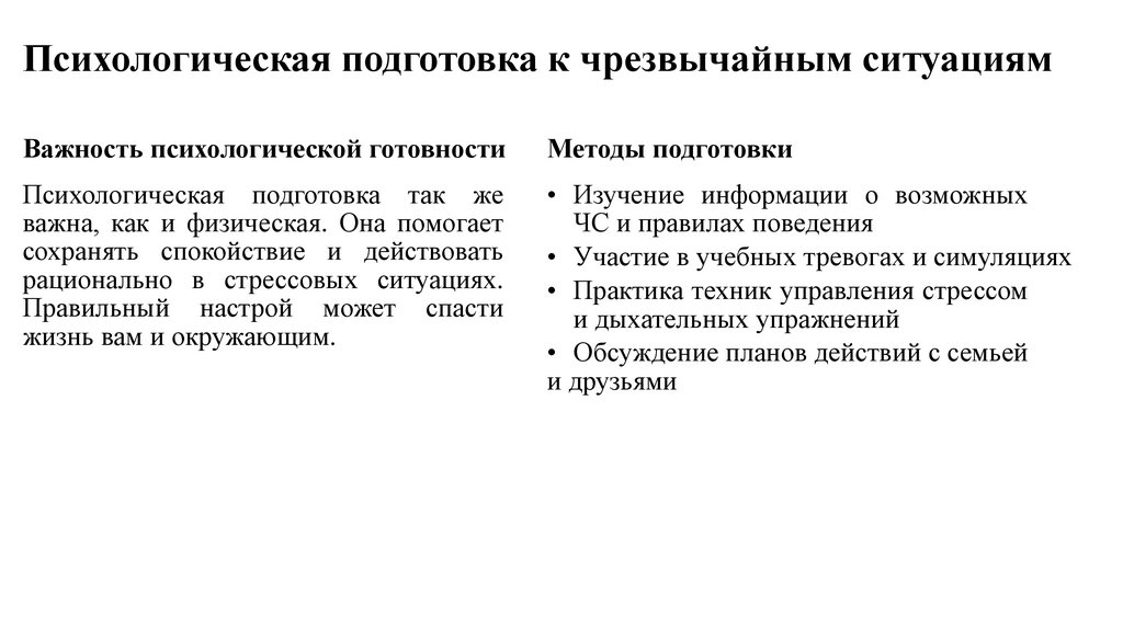 Психологическая подготовка к чрезвычайным ситуациямВажность психологической готовности