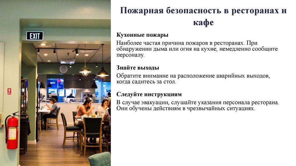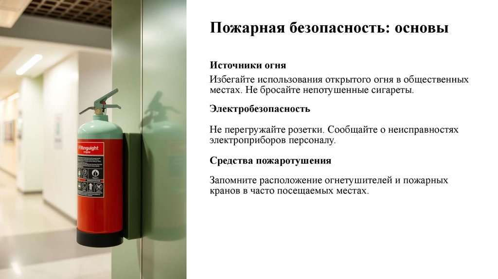 Запомните расположение огнетушителей и пожарных