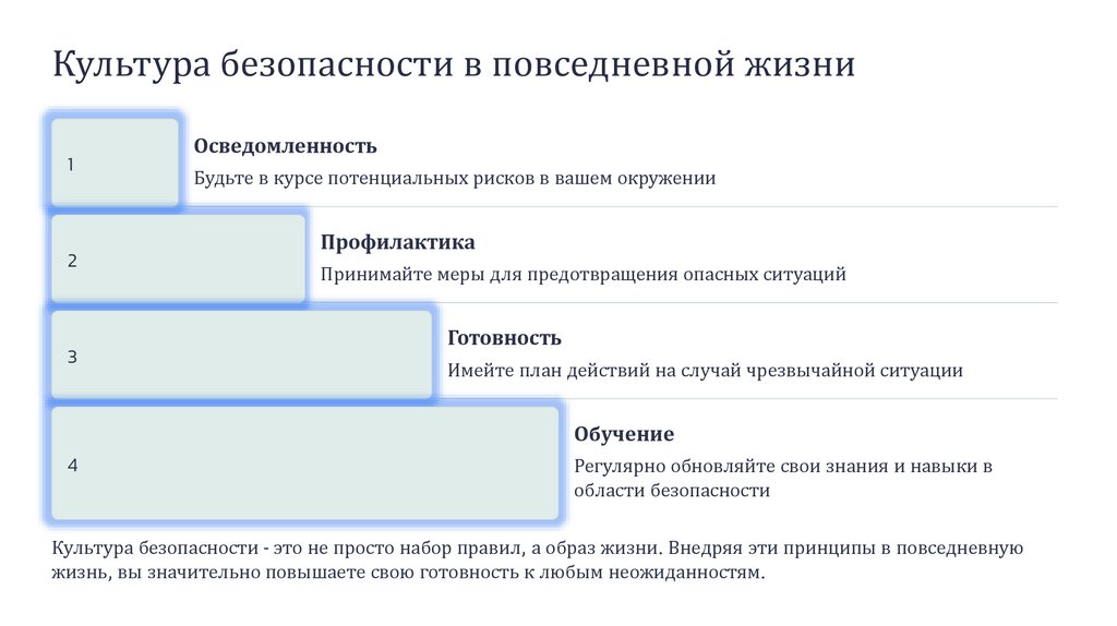 Культура безопасности - это не просто набор правил, а образ жизни. Внедряя эти принципы в повседневную