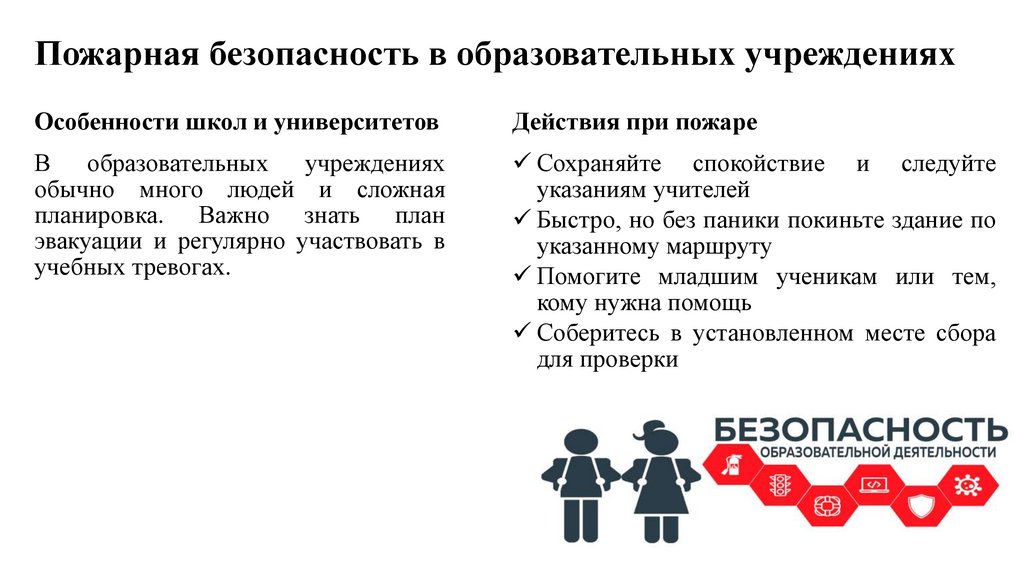 Пожарная безопасность в образовательных учрежденияхОсобенности школ и университетов