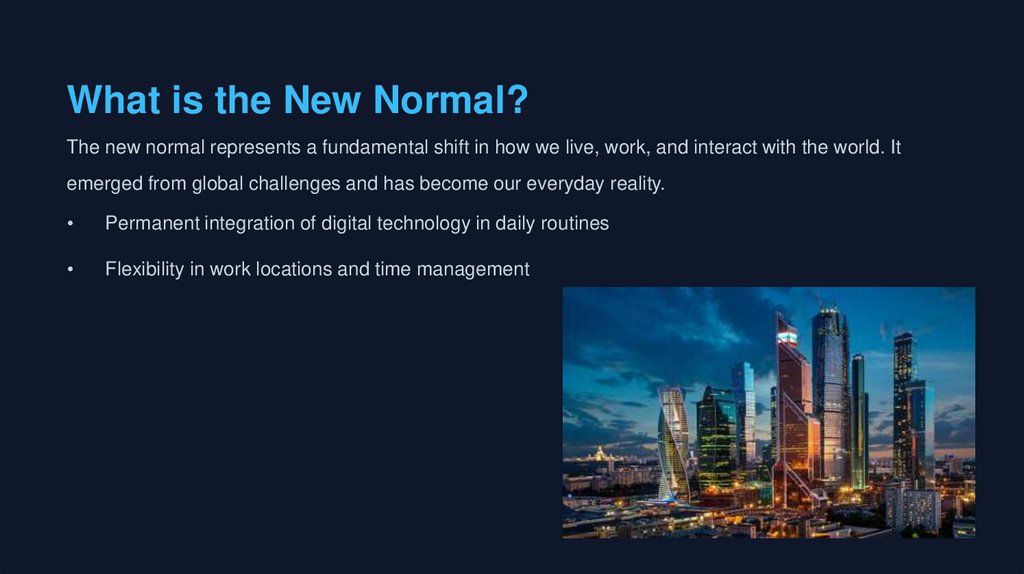 What is the New Normal?The new normal represents a fundamental shift in how we live, work, and interact with the world. It